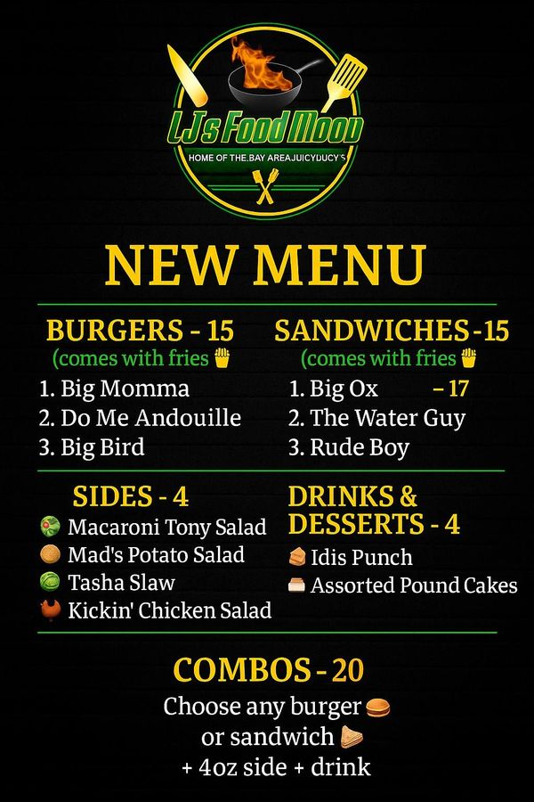 The Best Monday Night Comedy Show in town is partnering with the best burgers and sandwiches in the Bay! Beef, oxtail, jerk chicken, secret menu items and more brought to you by LJ'S FOOD MOOD! This is a night you won’t want to miss!